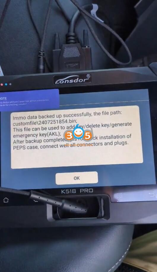 Back up immo data successfully. This file can be used to add key/delete key/generate emergency key (AKL).