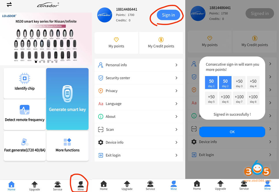 In Lonsdor App, go to Mine- Sigin in to get points.